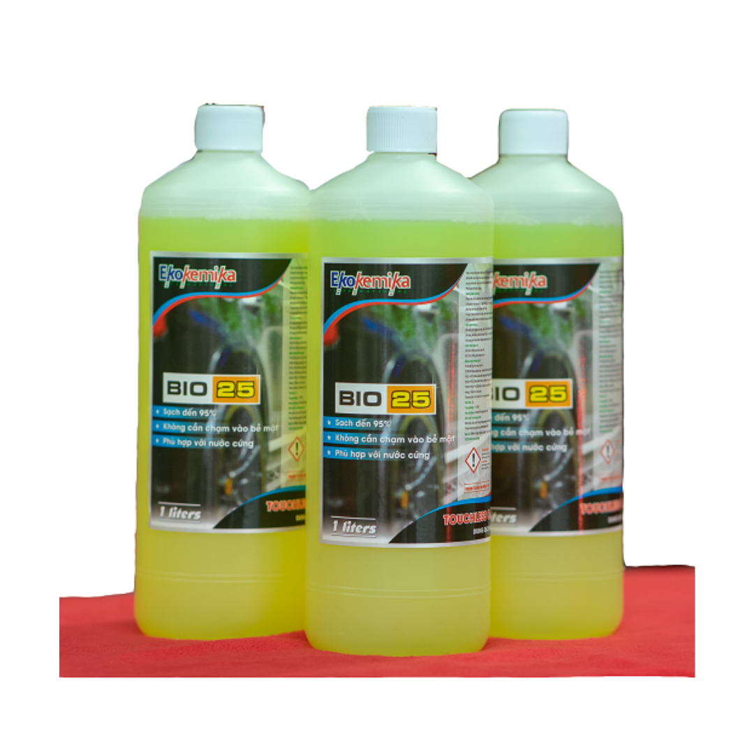 Ekokemika BIO25-1L là dung dịch rửa xe không chạm cao cấp nhập khẩu từ Italia, được thiết kế dành cho nhu cầu rửa xe gia đình hoặc thử nghiệm công nghệ rửa xe hiện đại. Sản phẩm giúp làm mềm và phá vỡ lớp bụi bẩn, bùn đất, dầu mỡ bám trên bề mặt xe mà không cần chà rửa trực tiếp, giúp hạn chế trầy xước sơn xe và tiết kiệm thời gian vệ sinh đáng kể.