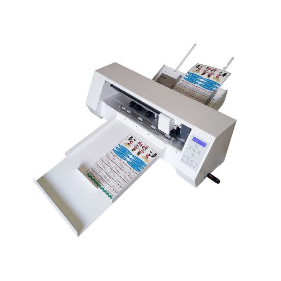 ▸ Hệ thống tự động load giấy giúp cắt decal tem nhãn liên tục mà không cần cho giấy từng tờ