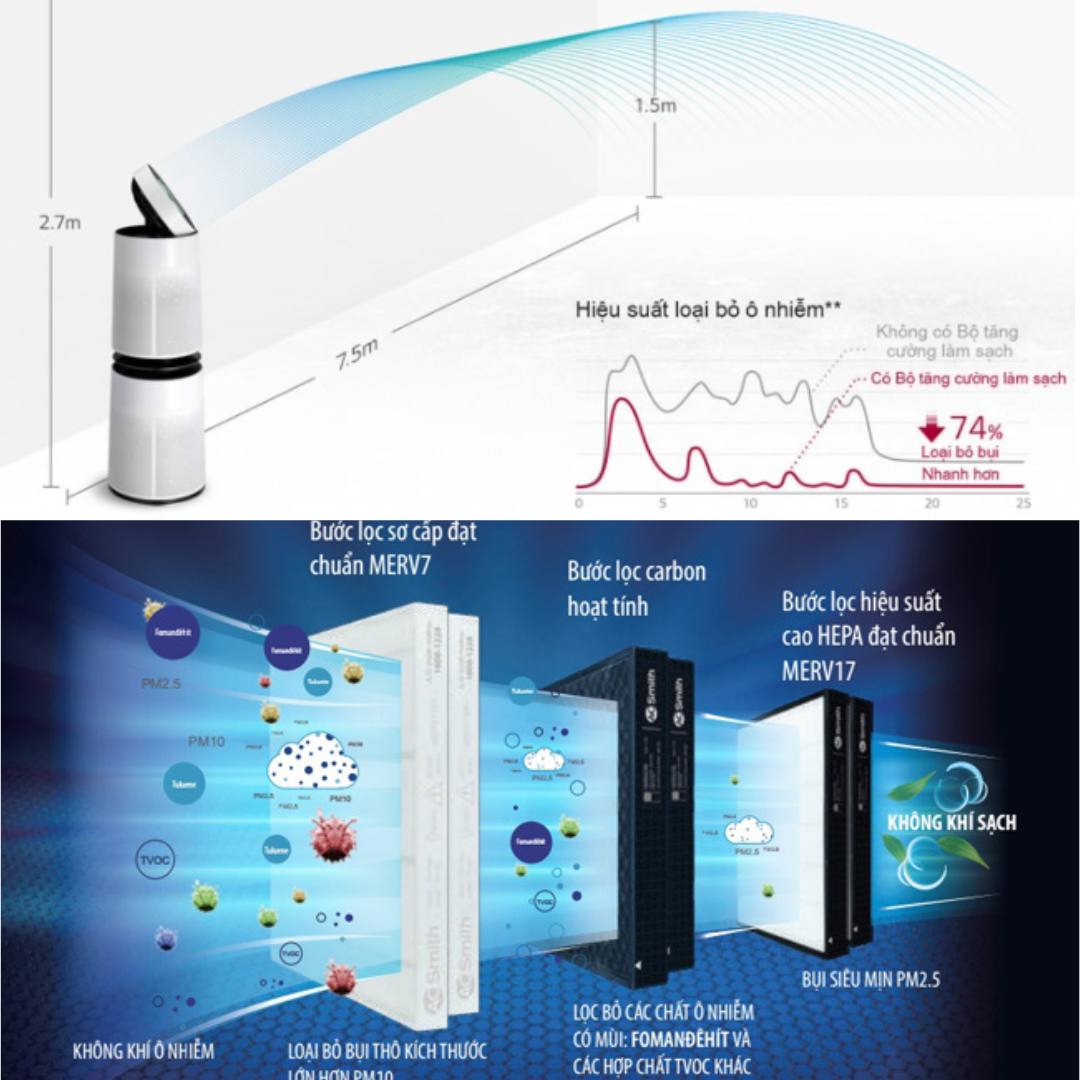 ▸ Hệ thống lọc: Lọc thô + than hoạt tính + HEPA