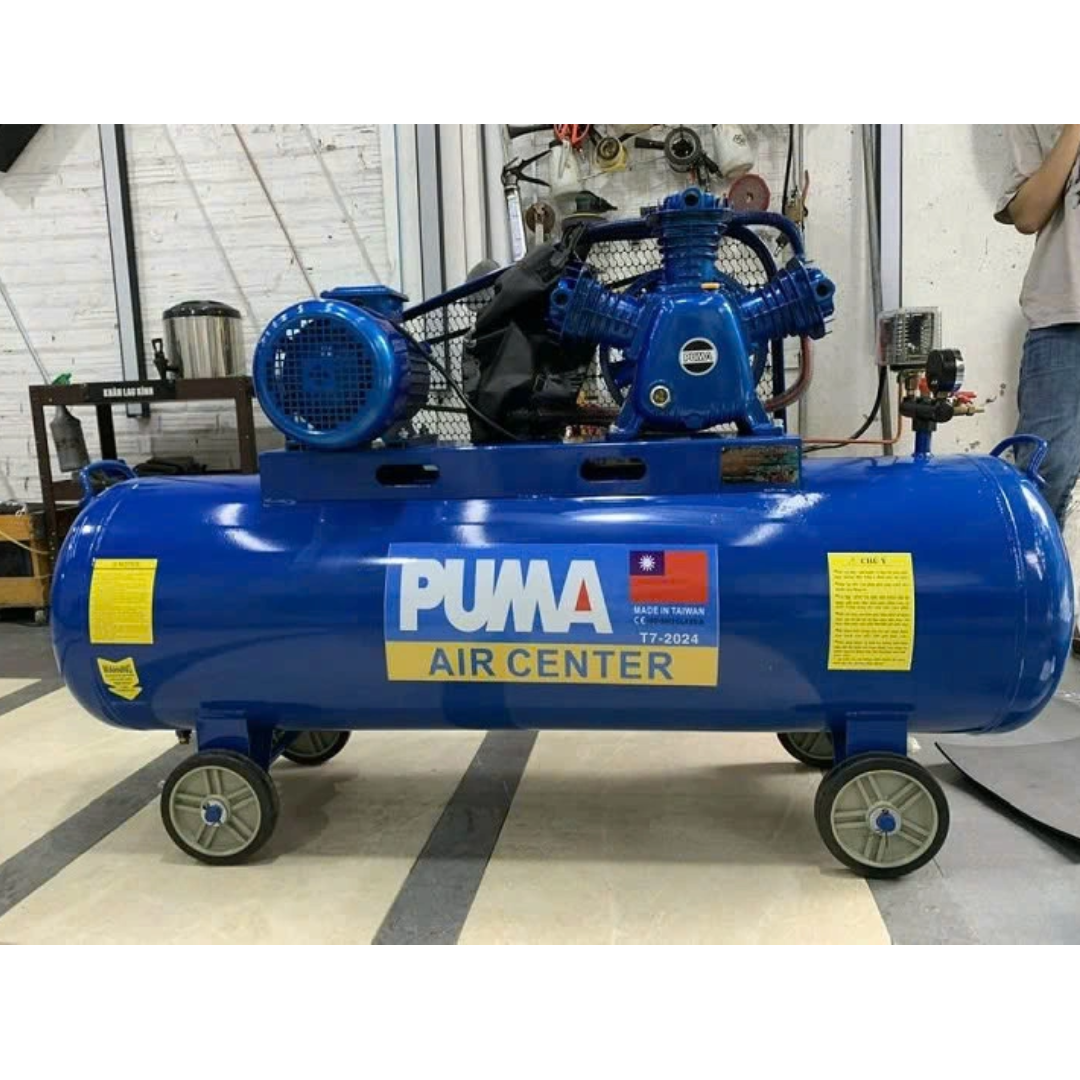 Máy nén khí dây đai Puma 10HP 300L W-0.9/8 3 pha là dòng máy công nghiệp lưu lượng lớn, phù hợp cho xưởng sửa chữa ô tô, gara, cơ khí, xưởng mộc, sản xuất công nghiệp vừa và lớn. Máy được sản xuất theo công nghệ Đài Loan, vận hành bền bỉ, tuổi thọ cao và chi phí bảo dưỡng thấp.