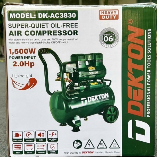 Máy nén khí Dekton DK-AC3830 không dầu 30 lít là lựa chọn tối ưu cho người dùng cần thiết bị nén khí bền bỉ, khí sạch và hiệu quả, đáp ứng nhiều nhu cầu sử dụng trong công việc và sinh hoạt hàng ngày.