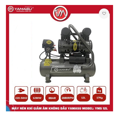 Máy nén khí giảm âm không dầu YAMASU model YMS-12L là dòng máy nén khí nhỏ gọn, vận hành êm ái và cho khí nén sạch không lẫn dầu. Sản phẩm phù hợp cho nhu cầu sử dụng tại gia đình, cửa hàng dịch vụ và các công việc kỹ thuật nhẹ cần môi trường làm việc yên tĩnh.