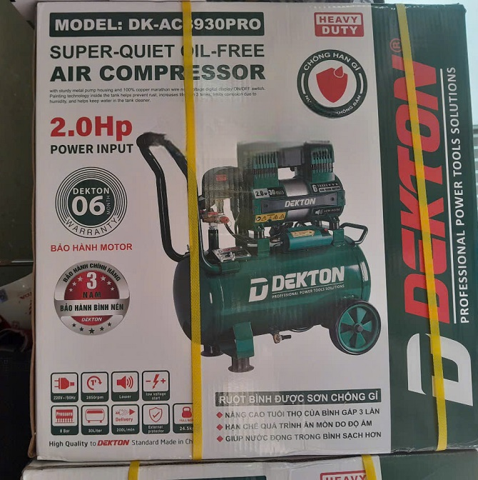 - MÁY NÉN KHÍ KHÔNG DẦU SƠN TRONG BÌNH DEKTON DK-AC3930PRO – 30 LÍT