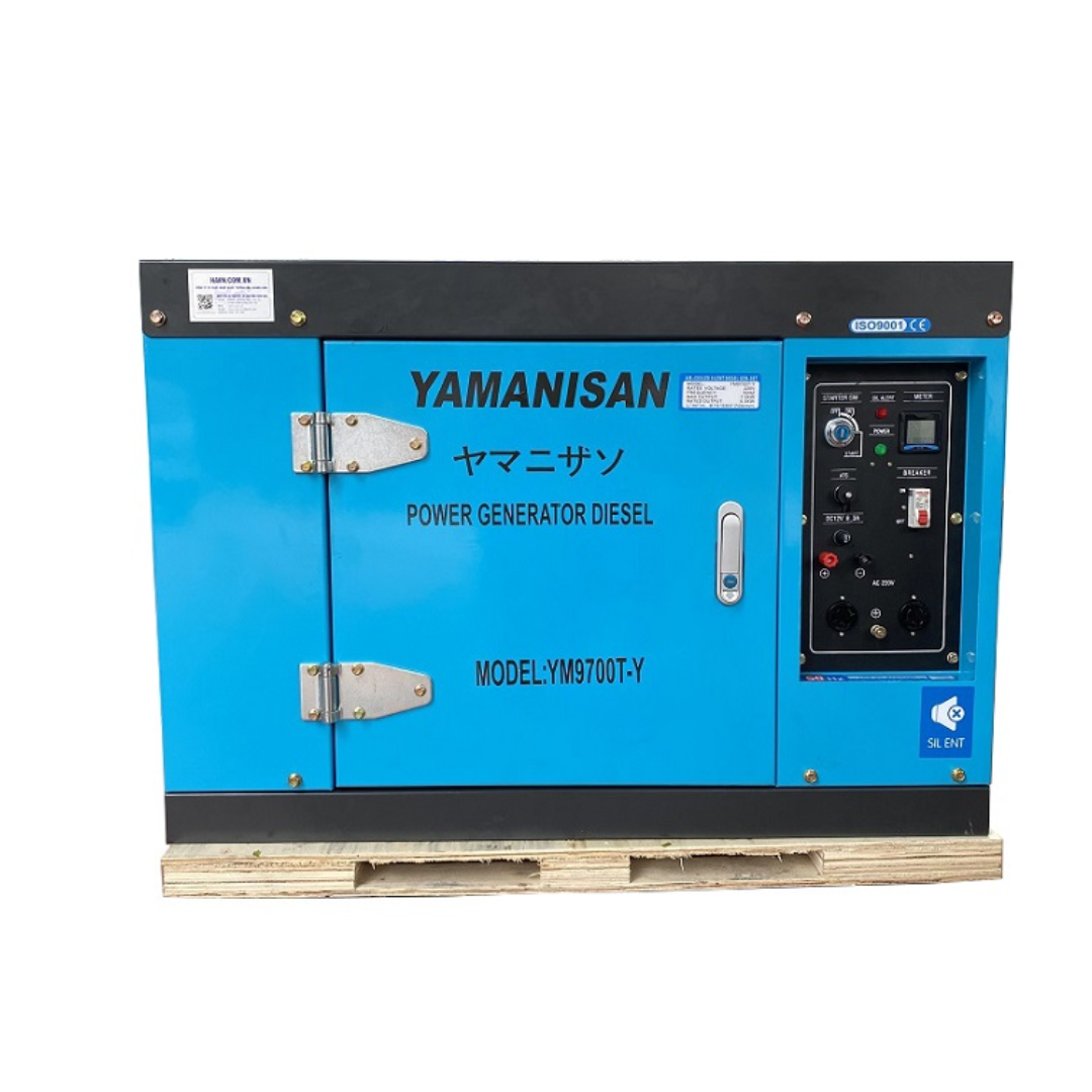 Máy phát điện Yamanisan YM9700T/Y 7kW chạy dầu diesel là dòng máy bền bỉ, vận hành ổn định và tiết kiệm nhiên liệu. Thiết kế siêu cách âm, khung chắc chắn và mẫu mã đẹp, phù hợp cho gia đình, cửa hàng và xưởng nhỏ.