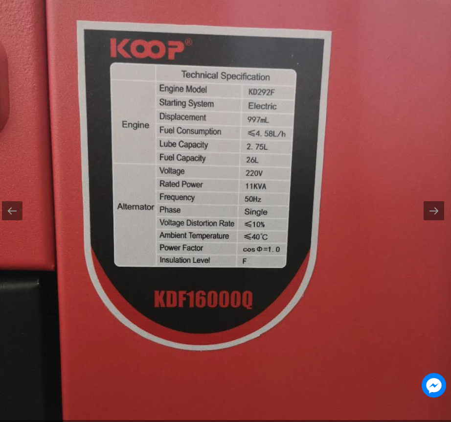 Máy Phát Điện Chạy Dầu Koop 12Kw KDF16000Q được sản xuất trên dây chuyền công nghệ hiện đại, thiết kế bền bỉ, vận hành ổn định và được nhiều gia đình, cửa hàng, nhà xưởng tin dùng.