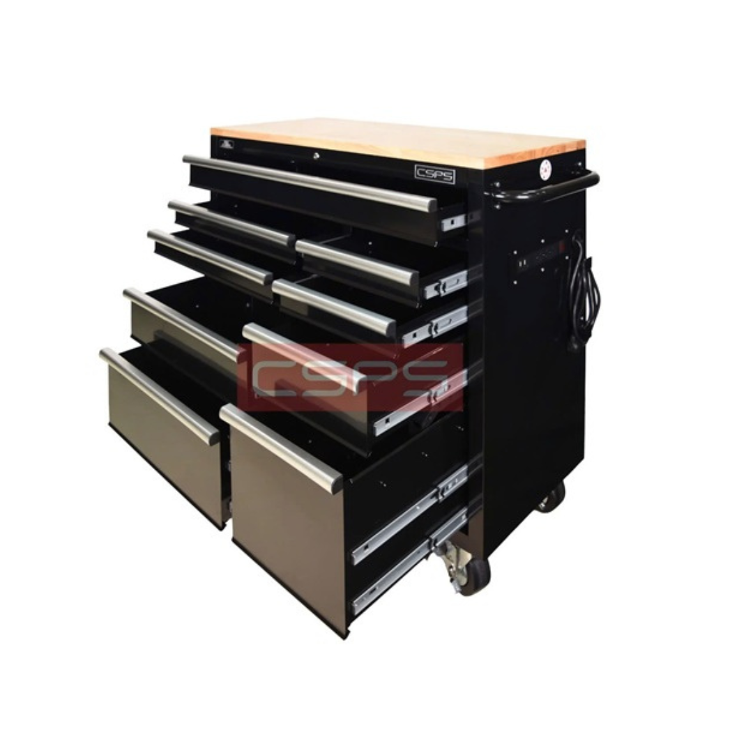 Tủ dụng cụ CSPS 104cm - 10 hộc kéo có mặt ván VNTC10410B13M là dòng tủ đồ nghề cao cấp dành cho môi trường làm việc chuyên nghiệp như gara ô tô, xưởng cơ khí và nhà máy sản xuất. Với thiết kế 10 hộc kéo đa dạng kết hợp mặt bàn gỗ chắc chắn, sản phẩm giúp tối ưu không gian lưu trữ và hỗ trợ thao tác kỹ thuật hiệu quả hơn trong quá trình làm việc.